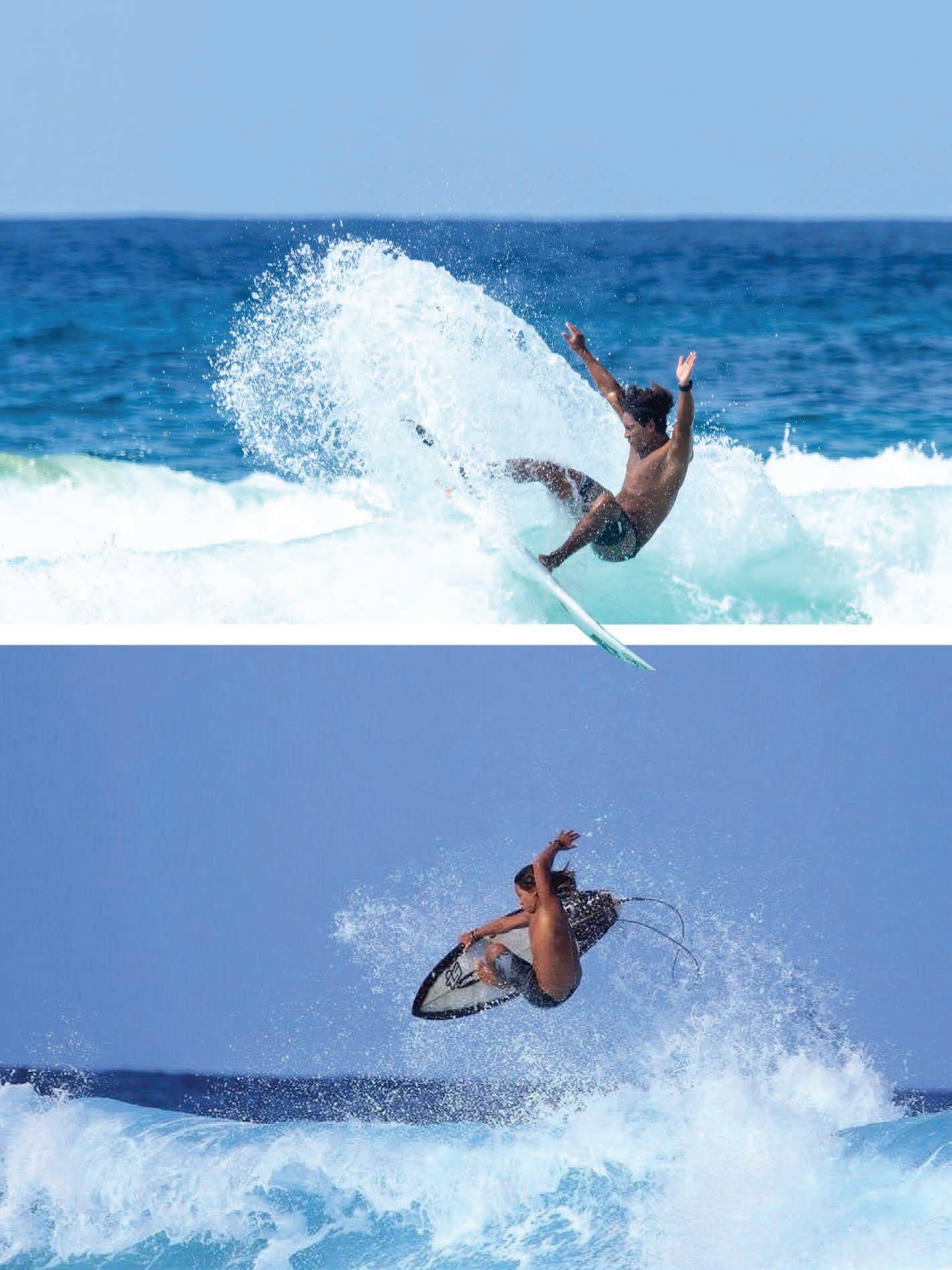 "When I caught my first wave, it never crossed my mind that I could be a profes sional surfer and make a living out of surfing. It was more of a hobby or a pastime for me. It was only when I realised that I was improv ing abnormally fast for a late-start surfer, that I began to think about it and try to be come a professional surfer”, said Mini, who never lacked support at home and abroad. For the love of surfing, he has already done some crazy things, like travelling to Scot land in search of the coldest wave. Mini says he has experienced and overcome many waves, from the most amazing to the most dangerous, in different countries through out his career, but the waves at home will always be for him the best and most special of all. “Tofinho has some of the best waves in the world on a good day. We manage to convince top professional surfers to travel to Tofo to surf in Tofinho. It’s a beautiful beach, with amazing waves and amazing people. Outside of Mozambique, my favourite place is the southwest coast of Portugal”, revealed Mini who, even though he has picked up some serious injuries in the water, never thought of giving up surfing.