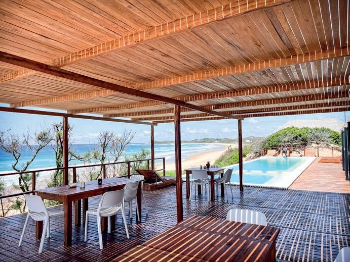 riência de vida. Adelline, co-fundadora e chef formada, traz a sua paixão pela culinária nutritiva ao preparar pratos deliciosos com ingredientes locais, biológicos e frescos. Entre as especialidades recomendadas estão a sopa de coco com frango, a salada asiática de amendoim com noodles, peixe grelhado, e os famosos camarões e lagostins moçambicanos. Além de uma excepcional gastronomia, o lodge oferece aulas regulares de ioga ministradas por Steven, incluídas na estadia. As sessões ocorrem num deck de ioga com vista para o mar, promovendo uma ligação única com a natureza. Este é apenas um exemplo das diversas actividades e serviços disponíveis.