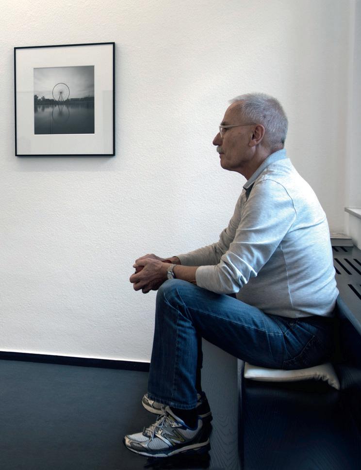 Der Fotograf Peter W. Schindler bevorzugt das ausgeglichene Quadrat für seine Schwarzweißfotografien, in das er Motive setzt, die einerseits alltäglich und vertraut erscheinen, andererseits durch den ausgewählten Blick überraschen. Mit Bildern im Bild arbeitet auch er mit mehreren Ebenen.