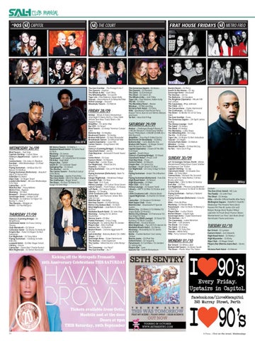 SATURDAY 29/09 Ambar – Challenger Ready ft Benny P v Micah/ Bezwun v Dead Easy/ Marko Paulo/ Philly Blunt v DNGRFLD/MR eD v Bob Noceros Amplifier – Pure Pop ft Eddie Electric Basement On Broadway – DJ Ricky Boheme Bar – Carte Blanche DJs Broken Hill Tavern – DJ Roger Smart/ Matt Richards/ Ben Dallin Capitol (Upstairs) – Cream Of The ‘80s ft DJ Ryan Capitol – Death Disco Clancy’s (Canning Bridge) - DJ Dood Claremont Hotel – Fiveo/ J.V.R Club Bay View – Fiveo Eastern Hotel – DJ Munch Empire Bar – DJ James Ess Eurobar – Roger Smart/ DJ Raci Eve Nightclub – DJ Crazy Craig/ DJ Don Migi Flying Scotsman - Under The Influence DJs Flying Scotsman (Defectors) - Fore DJs High Road Hotel – DJ Simon High Wycombe – DJ Matt Hipe Club – DJ E-Funk Honey Lounge – DJ Saxon/ Sardi Library – MKT ft DJ Riki/ DJ Vicktor and more Little Creatures Loft – Marine Beats Liquid Nightclub - DJ Klar55/ DJ Stevie M Llama Bar – DJ Reuben/ DJ Melvin Malt Super Club – Fiveo Matches Bar - Houseworkz ft Special Guests Metro City - DJ Matty S/ DJ Makka/ DJ Angry Buda/ DJ Kenny L Metro City (Climax) - DJ Francesco/ DJ Don Migi/ DJ Slick Metro City (R&B Lounge) - DJ Soso/ DJ Ruthless/ DJ Brett Costello Metro Freo – Havana Brown Mint Nightclub – Pop Life ft DJ Aaron/ AJ Mullaloo Beach Hotel – DJ Danny Mustang – Rockabilly DJ/ DJ James MacArthur Niche – Frankie Button/ Cee/ Jonny Zimber Norma Jeans – DJ Phat Daz Oxford Hotel – DJ Sequeria Paramount- DJ Cornflake / DJ Jordan/ DJ Johnny Boi Players Bar - Luxe Queens Tav - Gareth Richardson