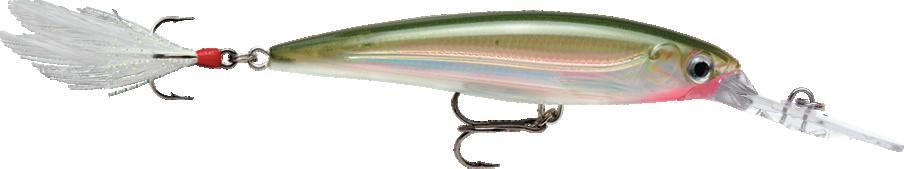 23 GGH - Glass Ghost OG - Olive Green SB - Silver BlueS - Silver Deep Cupped Lip • 3D Holographic Eyes • Flash Feather Teaser Tail • VMC® Black Nickel Hooks • X-Rap® Finish • Suspending “That unmistakable Slashbait® action, with all the bells & whistles.” The X-Rap® Deep rockets towards the bottom with all the characteristics that has made the X-Rap® legendary. The X-Rap® Deep can be fished with a rip and pause technique resulting in an enticing suspending action or a slow-wind for that classic Rapala “wounded-minnow” action. XRD10 Type: Casting/Trolling Running Depth:Length:1.8-4.5m10cmWeight:13gBoxQty:3MSRP:$28.95 X-RAP® DEEP TR - Brown Trout RT - Rainbow Trout Consistent Depth Control • Strong Rolling Action • Flutter Action On Drop • Sinking • X-Rap Finish • 3D Holographic Eyes • Sinking “Xtreme Attitude. Xtreme Results.” Based on the original CountDown that hit the scene in 1960’s, the X-Rap® CountDown brings a modern twist to this popular lure. Being in the X-Rap® family you can trust it has the durability and attitude to mix it with the toughest of predators. Sinking 30% faster than the original CountDown the X-Rap® CountDown has a tight action and a weight that allows it to cast like a bullet. RTL - Live Rainbow Trout TRL - Live Brown Trout XRCD05 Type: Casting Running Depth:MSRP:Length:0.6-1.2m5cmWeight:4gBoxQty:3$24.95 XRCD07 Type: Casting Running Depth:MSRP:Length:0.6-1.2m7cmWeight:10gBoxQty:3$24.95 X-RAP® COUNTDOWN