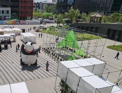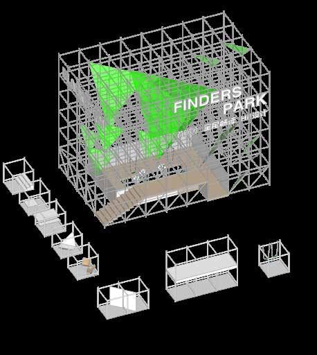 23 22 Geometry elements referencing from the most common and stable form in the park. Rest Observation Workshop Exhibition Performance Entertainment FORMATION Using Layher scaffolding system create triangles formed the process that fragments is fusing into a diamond-like energy block. The installation plan to carry several function to stimulate social engagement.