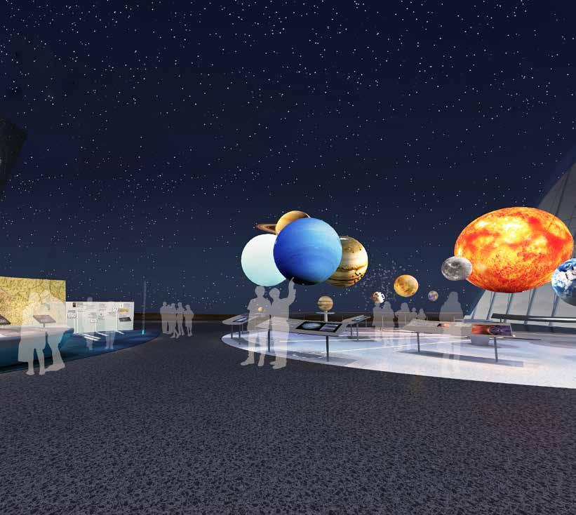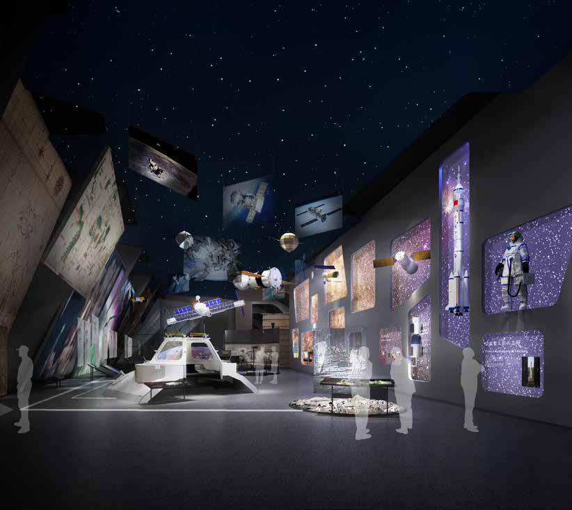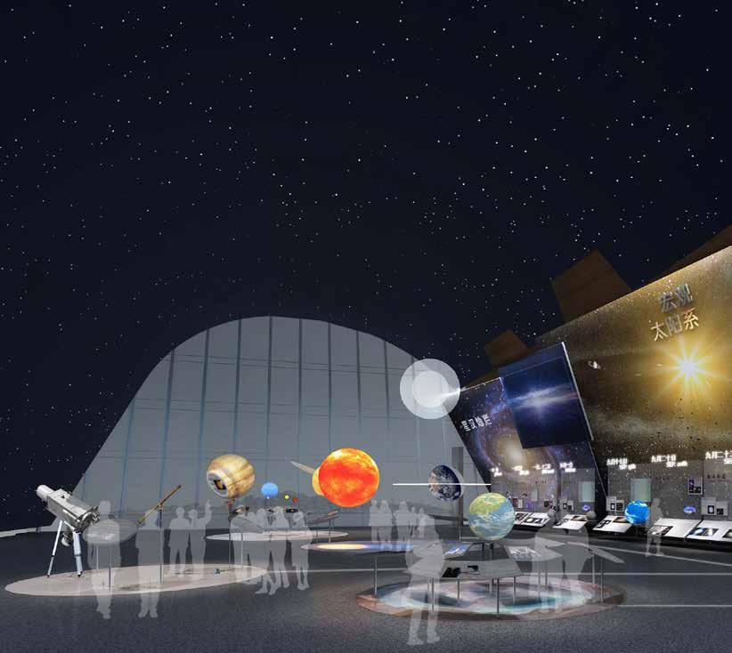 36 37 Maximize the reproduction of the starry sky, using special materials and lighting, projection and other technical means to present “starry sky background”, “specific space-time”, “natural phenomena” and other experience modes, so that After entering the exhibition hall, the audience will maintain their admiration and curiosity for the sky with the most natural posture of looking up. Ocean and Sky Mode 1 Starry sky background Mode 2 partially use Natural Phenomena DOME EXHIBIT DESIGN 04 According to the space arrange exhibits according to the time sequence and it relation to the “sky” Each station lead audience to use the technology to observe to the “sky” Human’s knowledge of the universe is extremely limited, the space design leaves a moderate amount of white space to reserve for future up- dates and additions, and to reserve more space for the audience to feel, observe and think. EXHIBIT STATIONS Ocean and Sky Layout Solar System and Earth-Moon System Telescopes and Observatories Space exploration “ Chang’e and the Yutu” EXHIBIT DESIGN 04
