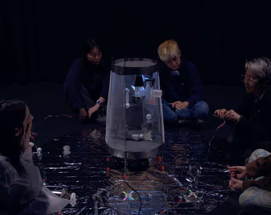 44 WORKSHOP SPACE Choose a practical operating table that is easy to operate and can store tools; The operating table is equipped with universal wheels for flexible use and can be arranged in different combinations depending on the situation. Creative Showroom 05 “Eulogy for the International Space Station” is a sonic fiction that highlights the urgency of collaborative survival in a time when private missions threaten the future of Earth. The project includes a workshop/event and performance that invites space people to re-imagine space stations through participatory sonic installations that sonify real-time electromagnetic data. The sound resources collected during the event were used to compose the eulogy in collaboration with Hengrui Zhang, using sound to enable personal interpretation and collective reflection on the future of humanity. Sonic fiction offers a means of decoding our relationship with technology, reimagining humanity in the post-human era, and discovering new modes of being in the world (Kodwo Eshun, 1998). Performance Curation Installation Design Master study major project Location: London, UK Time: 2023 RITUALISTIC PERFORMANCE Eulogy for the International Space Station 06 How will we live together?