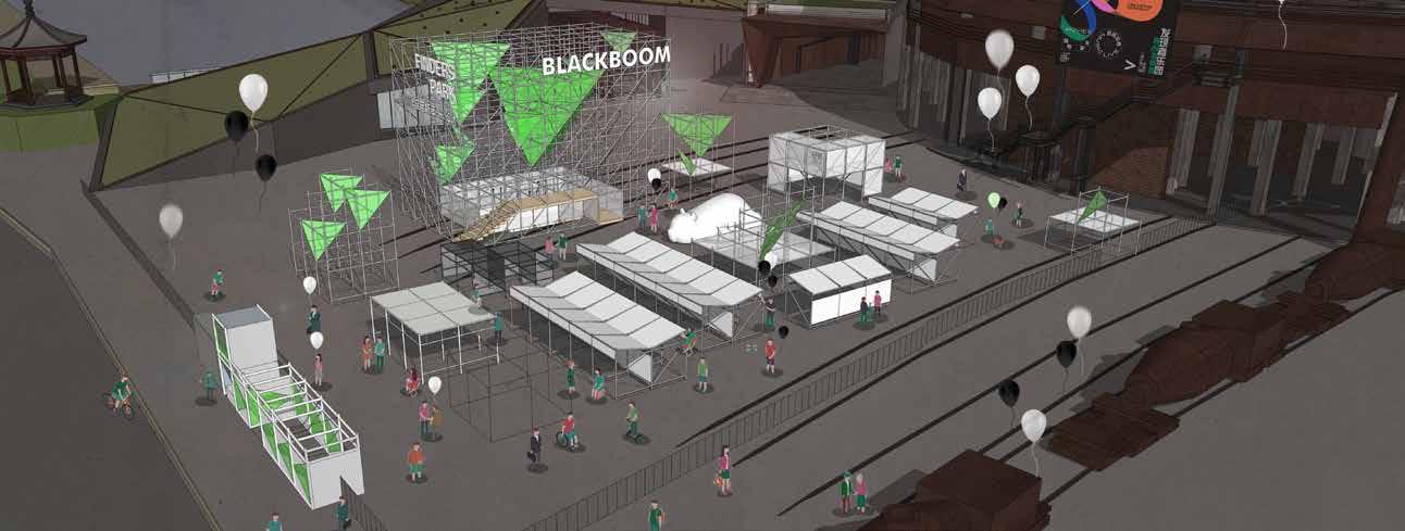 18 Tribute to Glories 01 02 The “Fusing” is a pop-up event design project, located in Shougang park which was the biggest steel-making industry based in the north part of China. This pop-up event aims to held exhibitions, shows, and markets. The goal of the design is to communicate the history and story of the steelmaking company after its renovation. The concept of this proposal was inspired by the original function of the site, No. 3 Blast Furnace. It was originally used to fuse, refine and reuse raw mineral materials. Therefore, decided to use metal scaffolding system to structurally “fuse” the history of the site, the creativity of the event, and the people together. Installation and Site Design Individual project Location: Beijing, China Time: 2021 Area: 1012m² POP UP EVENT IN RENOVATED INDUSTRIAL PARK Fusing What do we leave behind?