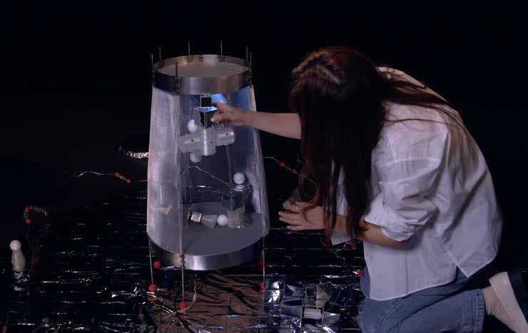 52 53 An participatory installation for people to gather and interacted to imagine future spaceships. And can capture electromagnetic field data as an observation instrument, and transmit it to sound for inspiration about the future imagination. DESIGN_ IMAGINATION HUB _ ENGINE TECHNICAL DIAGRAM The assembled spaceship blocks invite the audience to assemble them and imagine a future community like ISS. The blocks connect by magnets which can change the EMF data, which metaphorically means in the physics world every tinny change will lead to more change and all connected together as a whole DESIGN_MAG-SPACESHIP 3D PRINT MODEL UNITS Transparent PLA 3D Print White PLA 3D Print origami /Paper Styrofoam Ball Reflective Cardboard/ cut &fold Recycle Discs Connects by magnets: cause the change of EMF UNITS MATERIAL AND DESIGN Eulogy of the International Space Station 06 Eulogy of the International Space Station 06