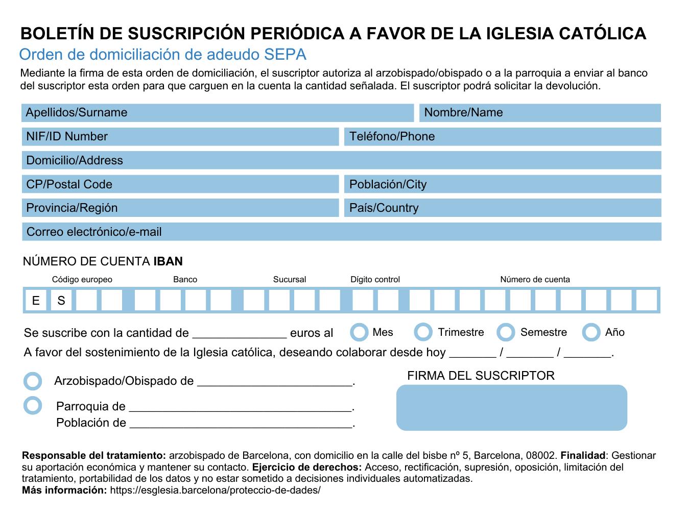 Colectas parroquiales, suscripciones, colectas para instituciones de la Iglesia, otros ingresos de los fieles