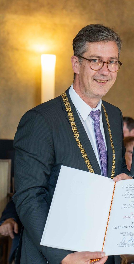 Mit einem Empfang im Wenzelsaal im Rathaus der Stadt Würzburg wurde Hans Sartoris am 3.6.2024 von Oberbürgermeister Christian Schuchardt und zahlreichen Stadträten beziehungsweise Aufsichtsratsmitgliedern geehrt.