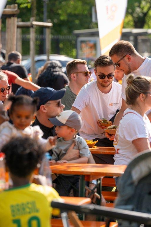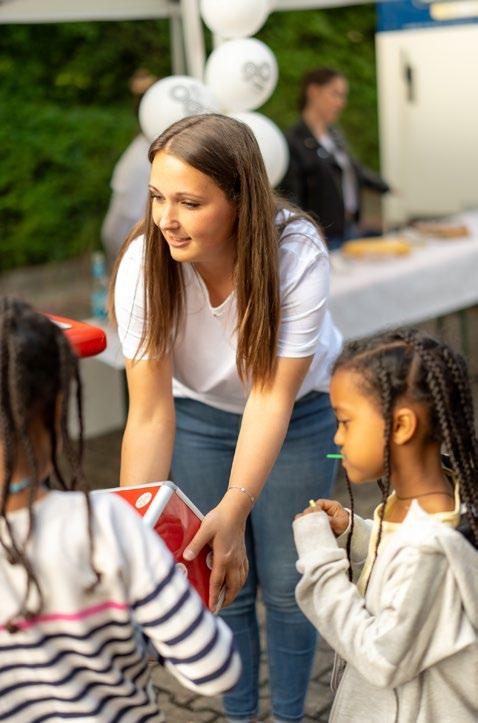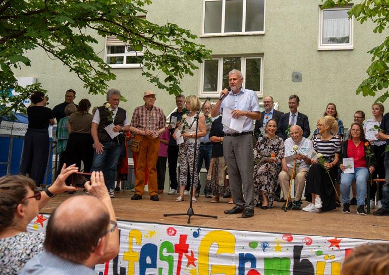 Die Lengfelder Mieterinnen und Mieter waren am Montag, den 3. Juni 2024 in den Innenhof der Flürleinstraße zu Kaffee und Kuchen eingeladen, das 90-jährige Bestehen ihres Vermieters zu feiern. Besonders die Kinder freuten sich über leckeres Eis. Auch beim Loseziehen hatten sie viel Spaß und konnten es kaum erwarten, die Überraschungen zu entdecken, die Quartiersbetreuerin Theresa Strobel bereithielt. Ein toller Nachbarschaftsund Familiennachmittag mit vielen strahlenden Kinderaugen.