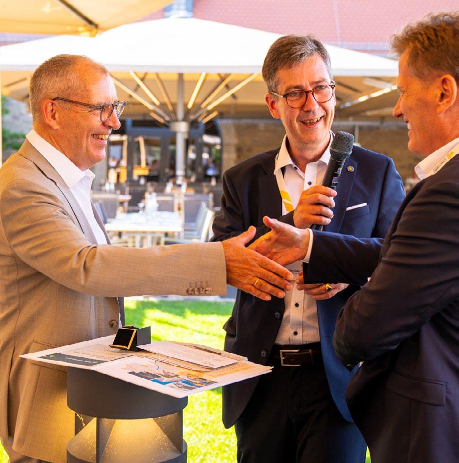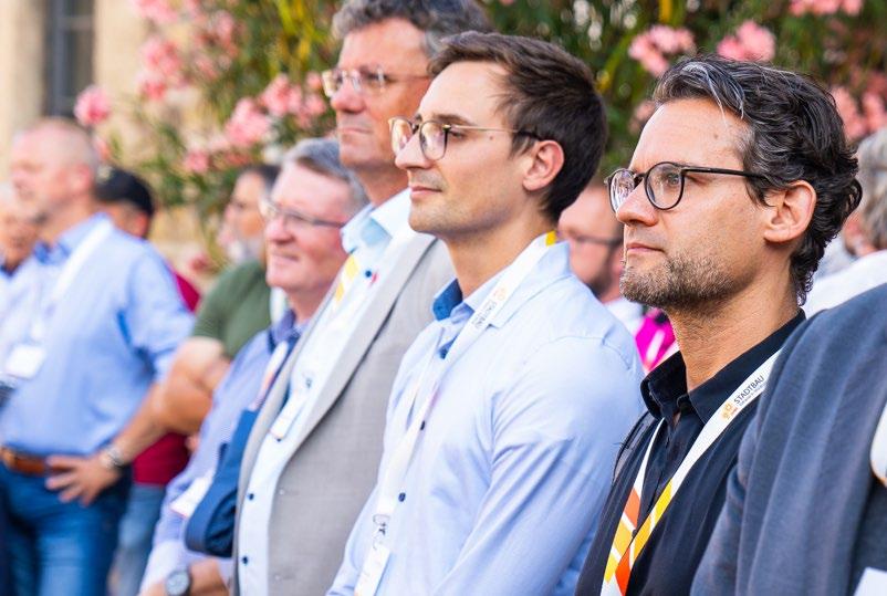 Hans Sartoris begibt sich nach über 18 Jahren an der Spitze der Stadtbau Würzburg in den Ruhestand. Seit 1.7.2024 ist Lars Hoffmann im neuen Amt tätig. An diesem Tag fand die interne Begrüßungsveranstaltung gemeinsam mit Oberbürgermeister Christian Schuchardt und den Stadtbau-Mitarbeiterinnen und -Mitarbeitern statt. Beim Sommerfest auf Gut Wöllried wurde Lars Hoffmann offiziell und herzlich als neues Mitglied in der Stadtbau-Familie begrüßt. Nach einer einmonatigen parallelen Übergangsphase ist er ab 1.8.2024 alleiniger Geschäftsführer. Auf den Folgeseiten lesen Sie Interviews mit dem neuen sowie mit dem scheidenden Geschäftsführer.