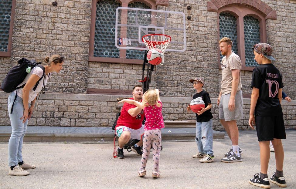 Gäste erhielten Verzehrgutscheine, erfreuten sich am vielfältigen Bühnenprogramm und durften gemeinsam mit Würzburg BasketsSpieler Maximilian Ugrai ihre Basketball-Künste trainieren.