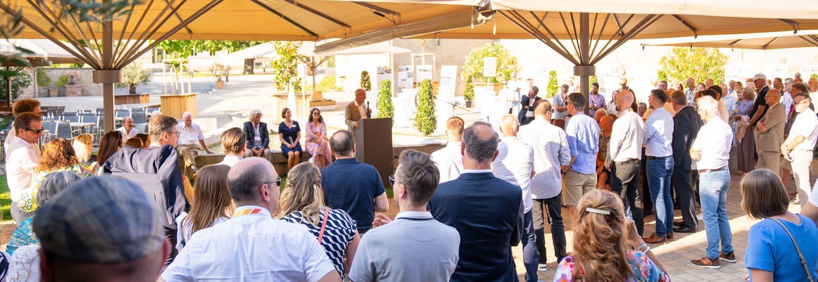 Am Donnerstag, den 18.7.2024 feierte die Stadtbau Würzburg ihren 90. Geburtstag auf Gut Wöllried. Gekommen waren die gesamte Stadtbau-Belegschaft, der Aufsichtsrat, Geschäftspartner und befreundete Wohnungsunternehmen sowie Vertreter des Dach- und Regionalverbandes der Wohnungs- und Immobilienunternehmen.