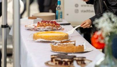 Den Auftakt der Veranstaltungsreihe machte am Samstag, den 4. Mai 2024 das Fest am Heuchelhof. Im Rahmen des Bürgerfests, das traditionell durch den Bürgerverein und das Quartiersmanagement der Stadt Würzburg organisiert ist, hat sich die Stadtbau in ihrem Jubiläumsjahr besonders engagiert. Bei bestem Wetter waren die Heuchelhöferinnen und Heuchelhöfer auf den Place de Caen eingeladen, wo sie ein vielfältiges und unterhaltsames Bühnenprogramm erwartete. Mieterinnen und Mieter der Stadtbau erhielten von Quartiersbetreuerin Laura Fecher am Stadtbau-Stand u. a. Verzehrbons. Außerdem konnten die Gäste in die Unternehmensgeschichte eintauchen und sich auf den Ausstellungstafeln über die Entwicklung der heutigen Stadtbau Würzburg und den Stadtteil Heuchelhof einlesen. Die Ausstellungen waren auch bei allen weiteren Festen fester Bestandteil.