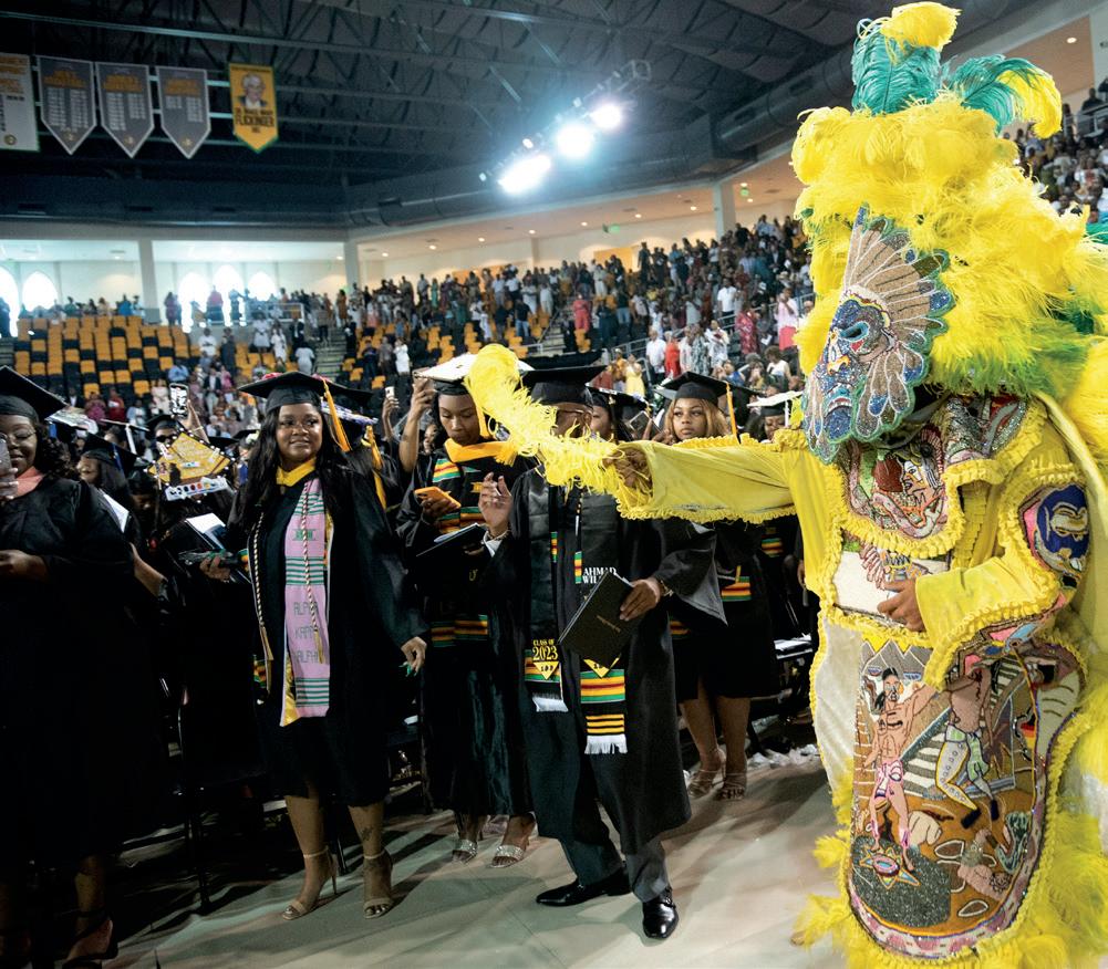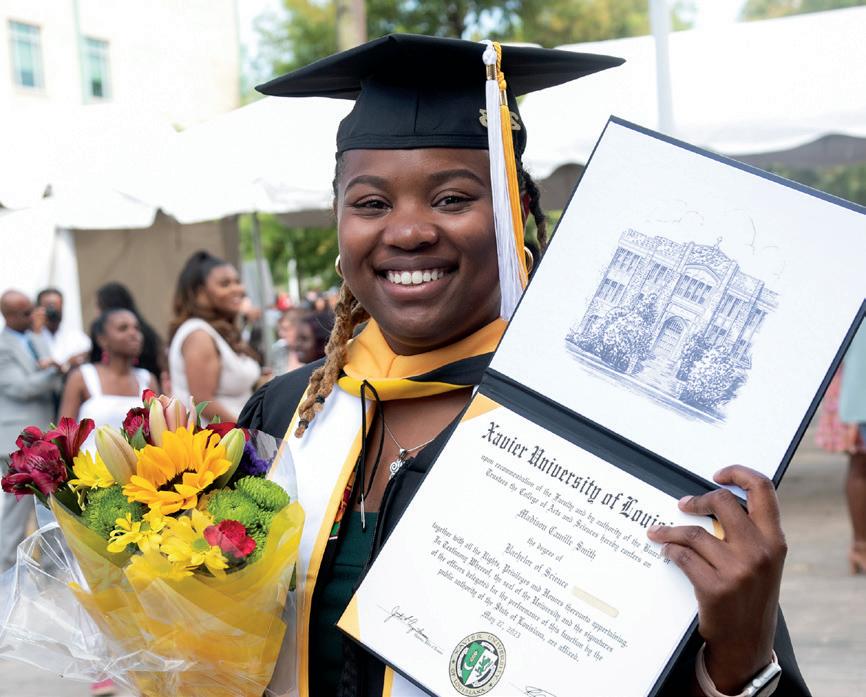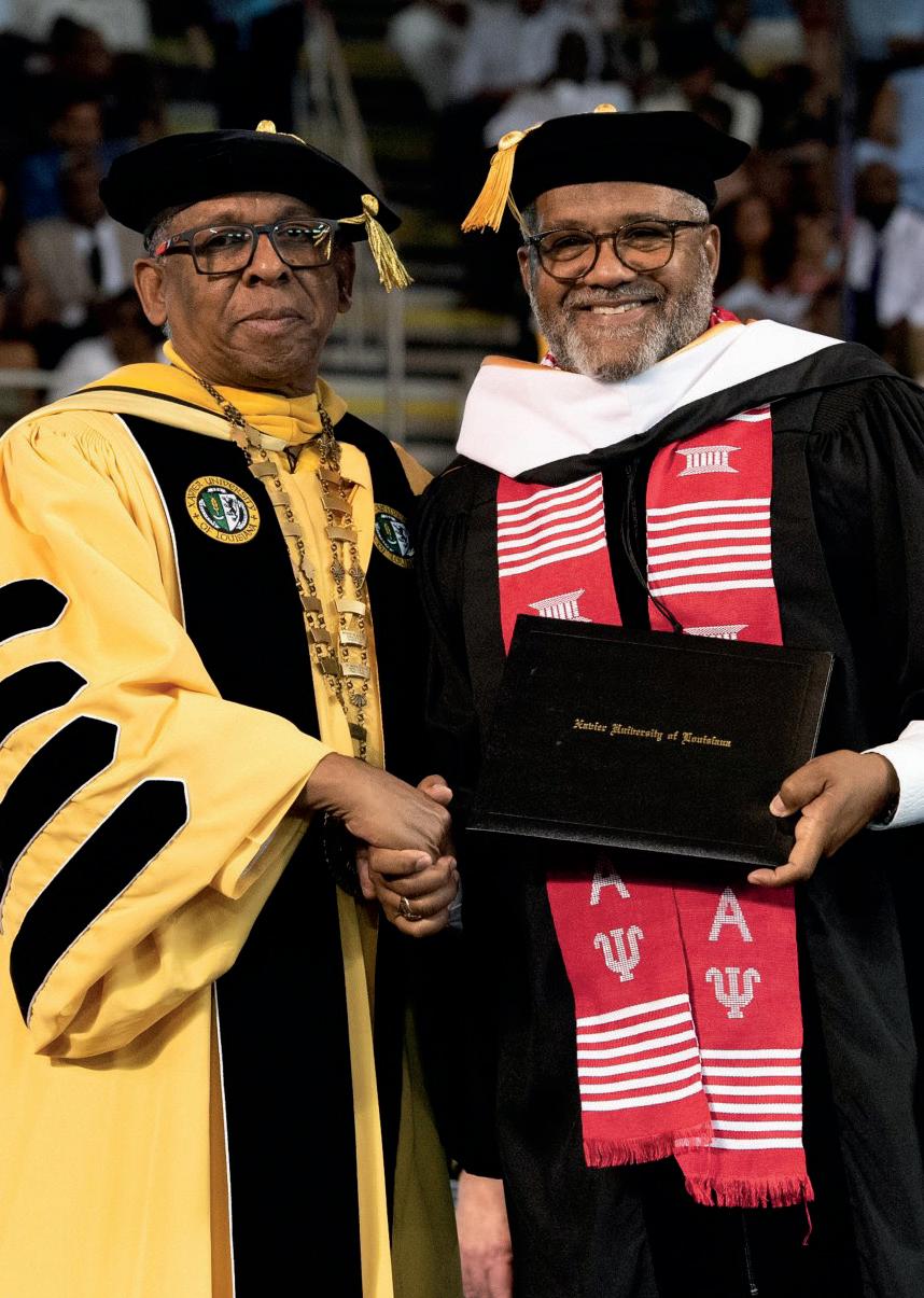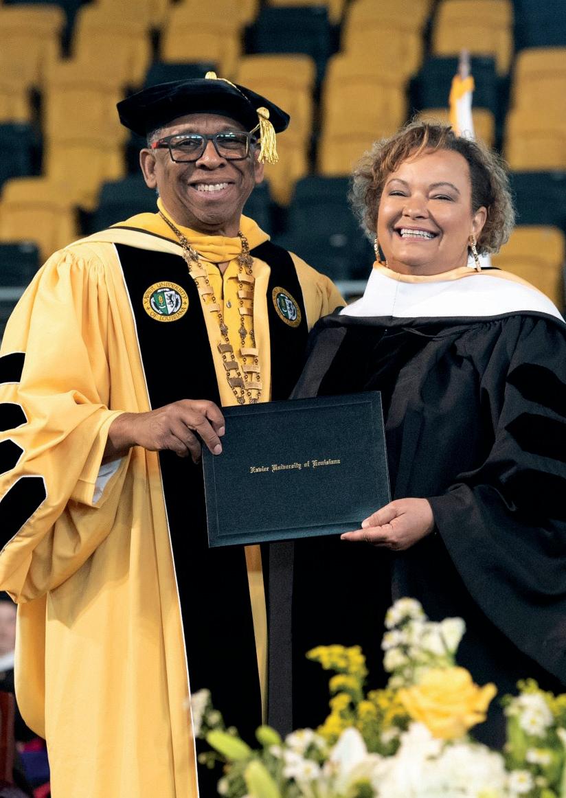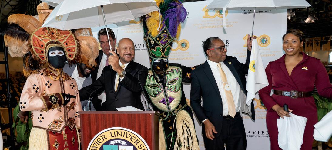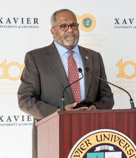 The Xavier University story is rooted in faith and fearlessness. “Be not afraid!” As a community, we have navigated apartheid, cultural wars, hurricanes, floods, and a pandemic, never settling for mediocracy but emerging ever stronger and more resolved, committed to our to students and their great potential. Now, we stand at the threshold of our next century. Xavier commits to participate in solving the nation’s most pressing challenges – health equity, K-12 education, civil rights, and representation of African Americans in historically underrepresented careers. In this issue of the “Xavier Gold,” you will learn more about our “Press Forward. Fear Nothing” Comprehensive Centennial Campaign and the priorities on which our University will build for its future. The Au Courant provides a snapshot of a year filled with achievement and mission-driven work of our faculty, staff, and students. You will not want to miss the stories of our alumni facilitating health equity partnerships that will transform the nation and health care.