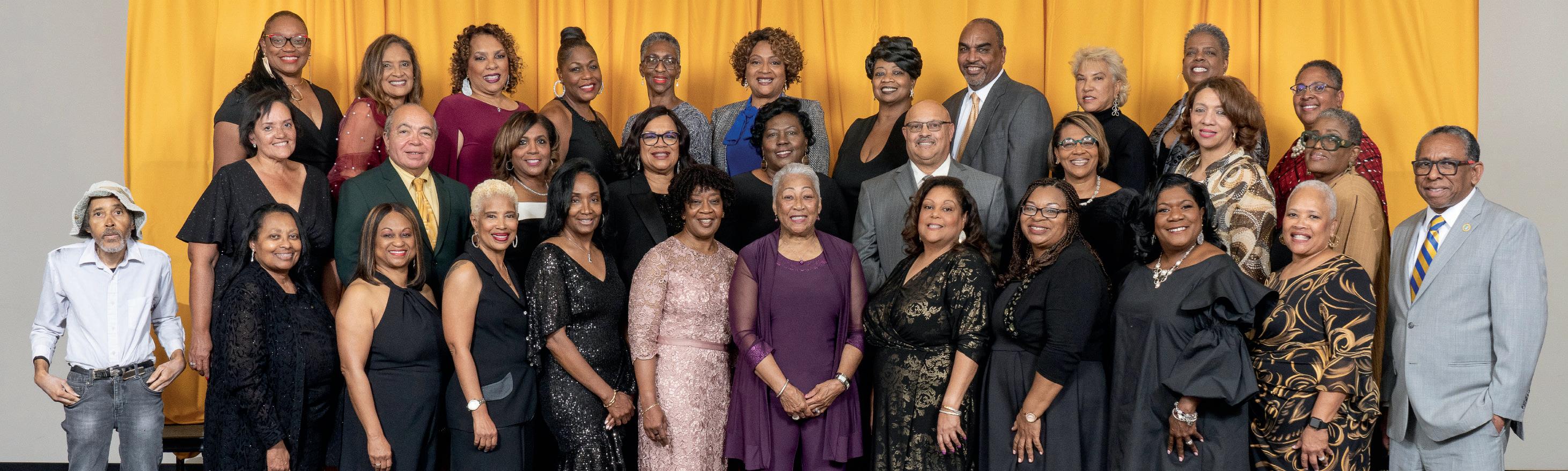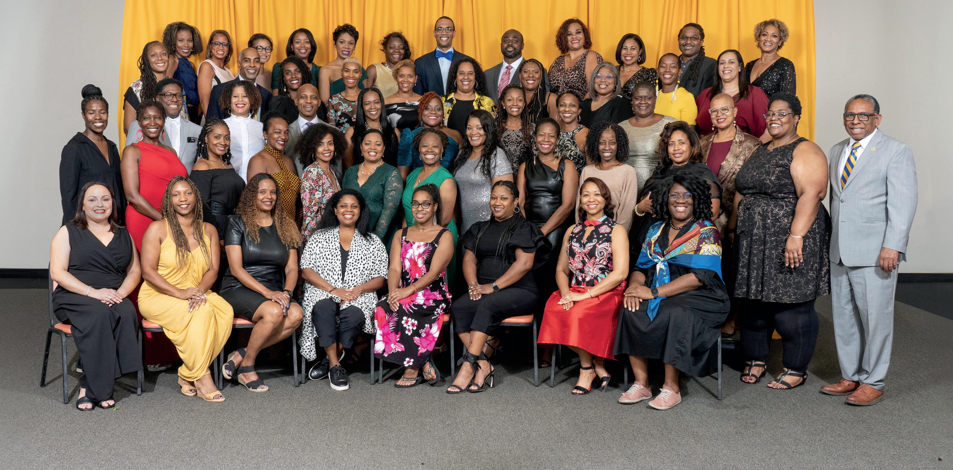 Class of 2002: Row 4: Ashli Alexander, Oneka Richardson, Neil Lewis, Brian Landry, Akilah Blaylock, Aliya Hayes, Nkechi Nzerem Johnson, Nina Washington, Quintesia Grant, Tamieka Love, Nicholas Rice. Row 3: Hosea Williams, Ayesha Lindsey, Tara Robinson, Stephanie Easton, Teal Holden, Kimone James, Leia Dawson, Katrice Larece, Raynelle Jones, Tiffany Thomas. Row 2: Leslie Todd, Melanie Harris, Lacresha Hawkins, Sonni Elliott-Libutsi, Tarin Bynum Neal, Jacinta Cooper, Asha Bryant, Brandy Malbrough, Kenchasha Shelton, Aliya Brown, Roshawn HowseVaughn. Row 1: Latoya Wilson, Nellie Crawford, Alfred Johnson, Kalina Sanders, Regina Hall-Ngorima, Dion Martin, Lauren Outlaw, Ebony Rose-France, Shayla De La Rose, Temesha CollinsNash. Seated: Davetta Lee, Tamara Lewis, Jewelyn Williams, Mesha Holland, Devin Campbell, Rosa Jordan, Jasmine Dorsey, Michelle Ware.