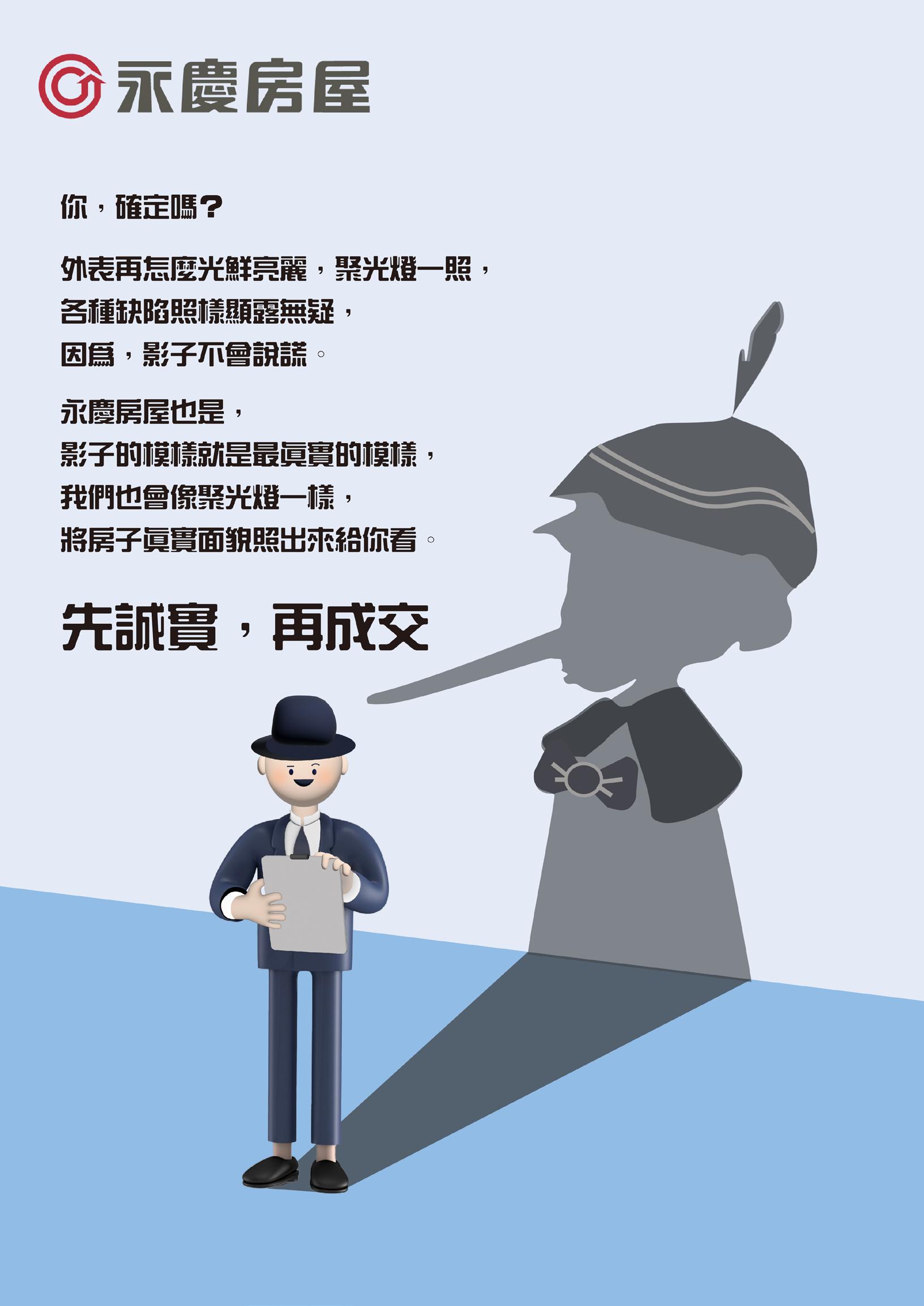 永慶房屋也是, 影子的模樣就是最真實的模樣, 我們也會像聚光燈一樣, 將房子真實面貌照出來給你看。