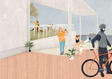 This middle-rise housing project in Syracuse is shaped by the concept of a pedestrian road, designed to enhance the urban fabric by providing a safer and more accessible route from the side street to the parking lot.