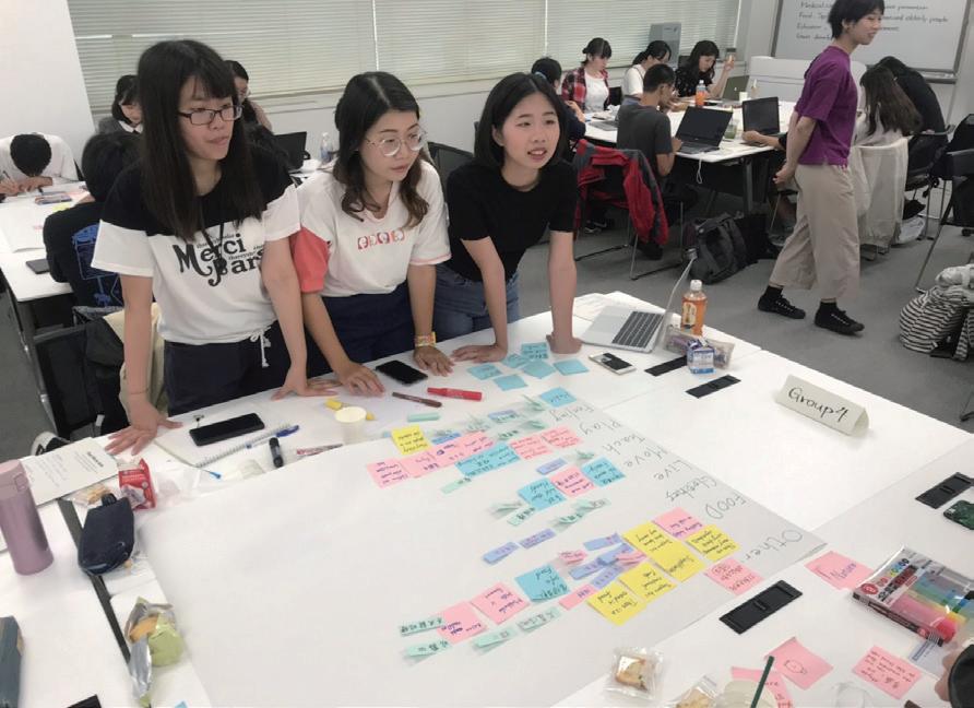 的想法也受到大家的肯定。設計交流的 過程中和組員一同深入探討在地文化, 彼此傳遞他國間的想法與創意。相互融 合。建立出多元化的組織系統。和日本同 學介紹起台灣文化時,覺得非常的有趣, 也在設計交流的分享中也發現到許多獨 特且有趣的新事物呢。