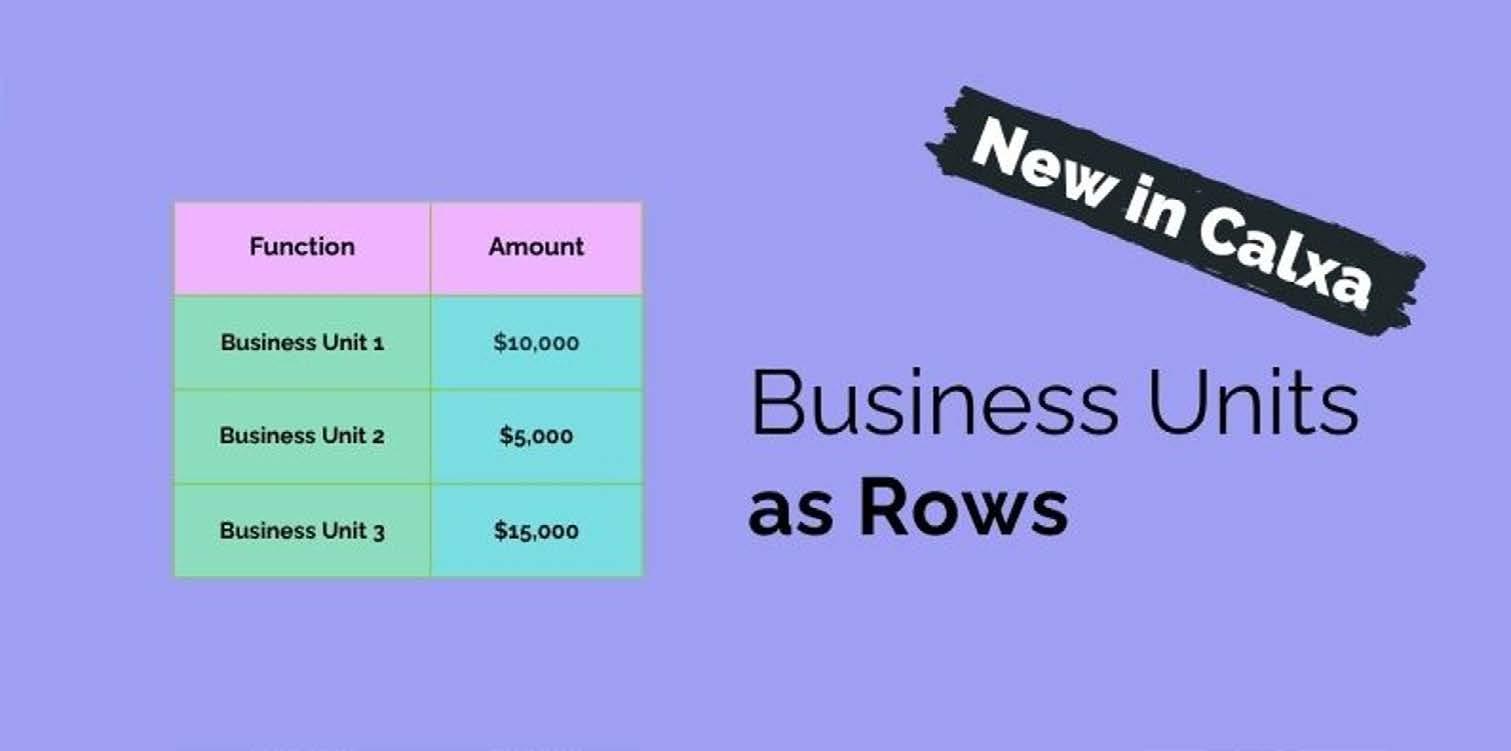 Business Units as Rows are New in Calxa