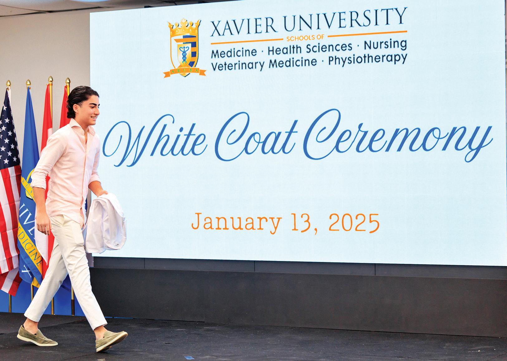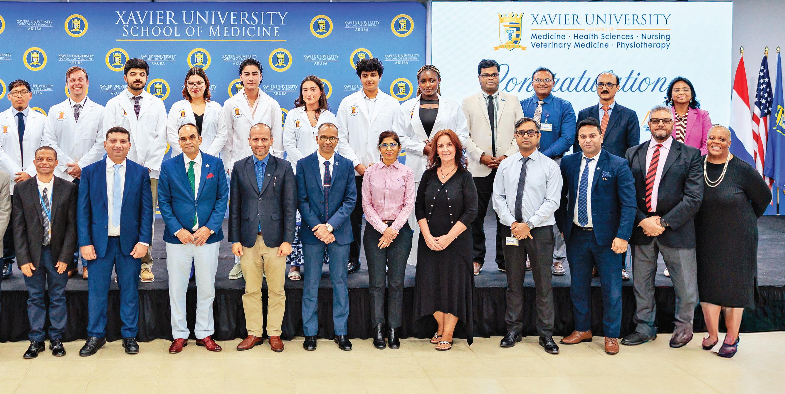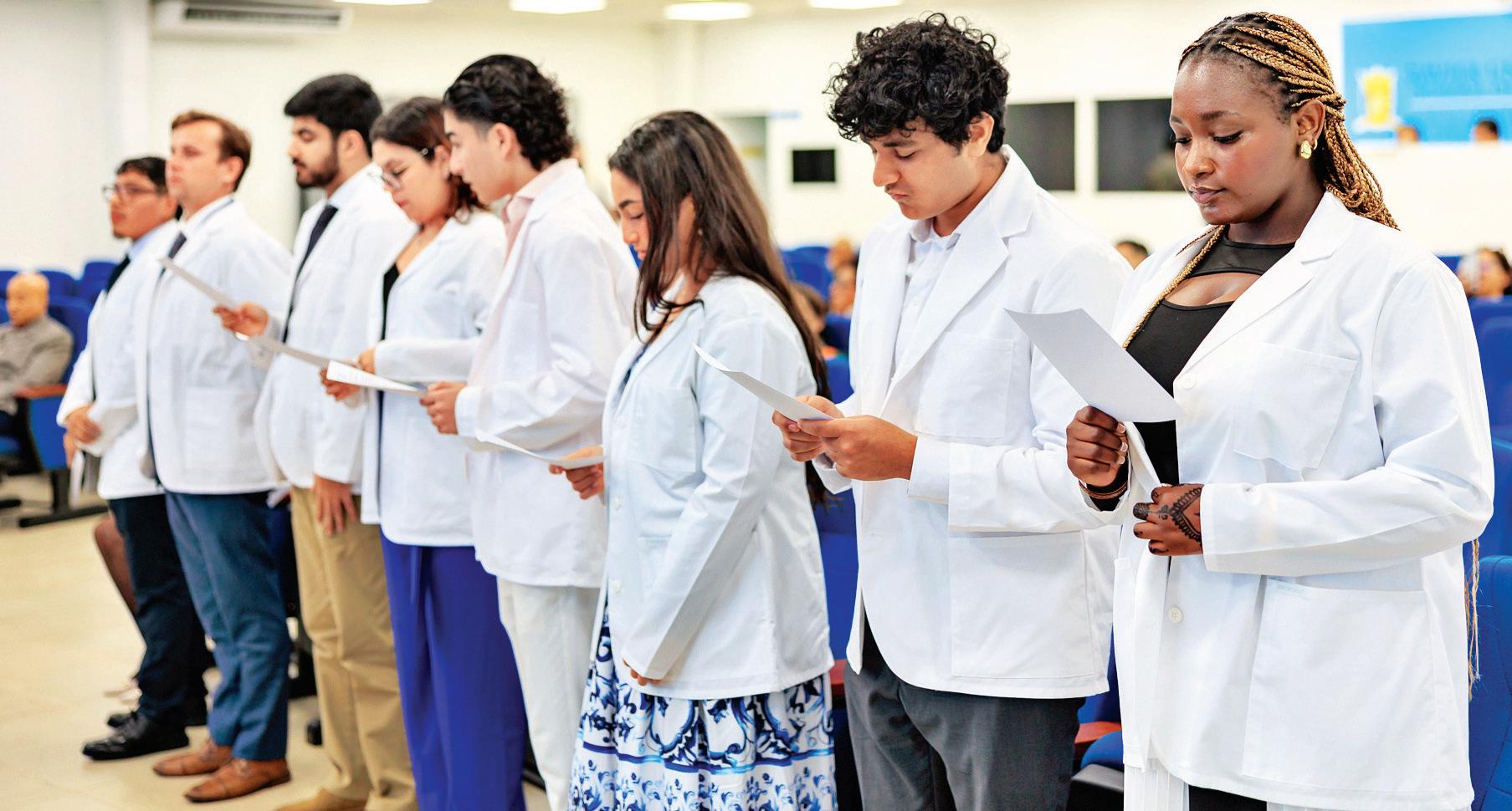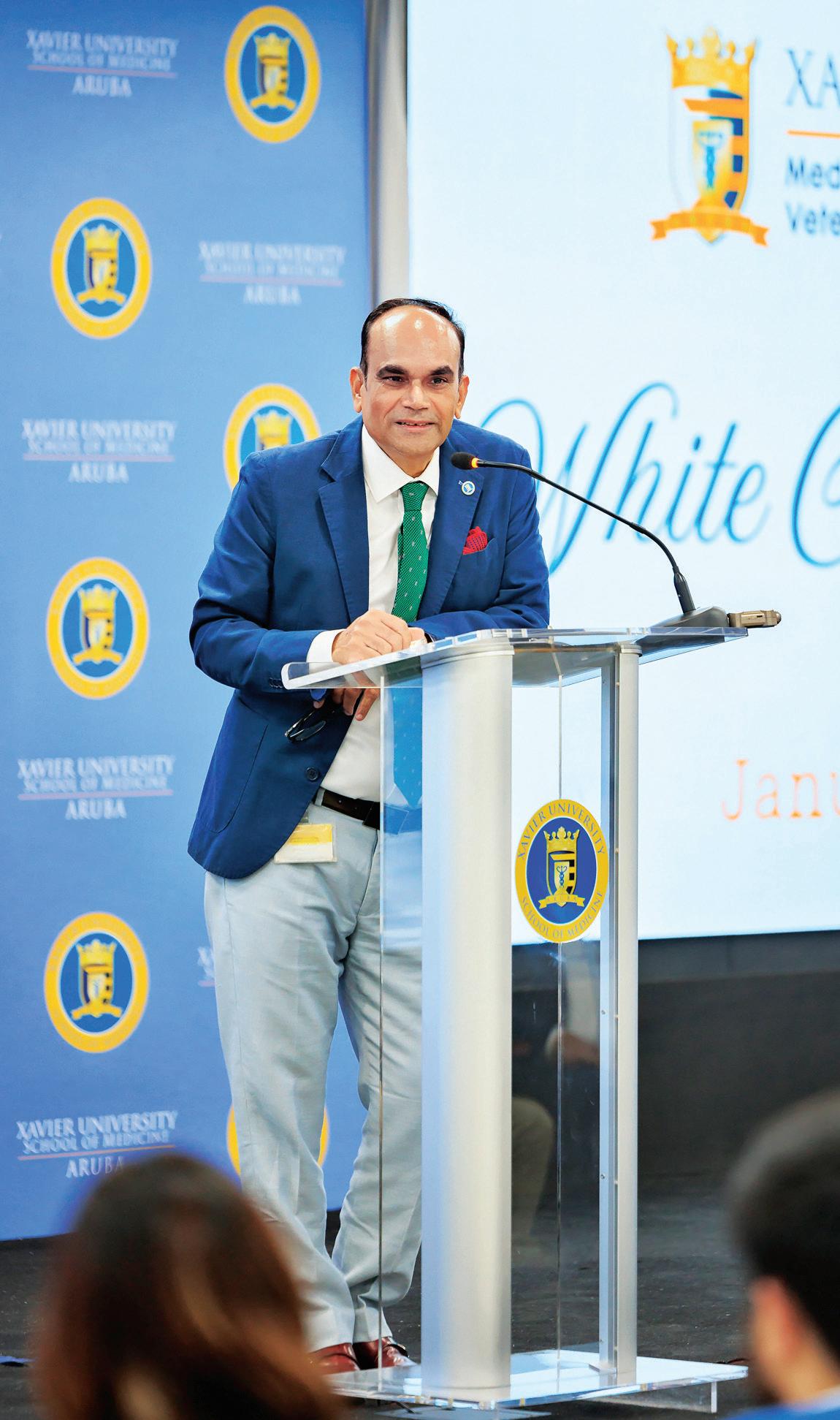 HE January 2025 orientation and whitecoat ceremony marked an exciting start for our new and promoted students in the MD and DVM programs. Representing diverse backgrounds from Aruba, Suriname, the US, Canada, Nigeria, and India, these students embody the global nature of our institution. Among the MD whitecoat recipients are Adam Stanko, Heldrick Yana, Tamara Daniarov, Benjamin Daniarov, Waqar Bhatti, Judith Akwaeke, and Stephany Lacle. The Department of Veterinary Medicine program proudly welcomes Vaishnavi Koparde as its newest whitecoat recipient. Notably, two promoted local students, supported by the prestigious Fofoti Scholarship, have joined the ranks, further highlighting our commitment to nurturing local talent n