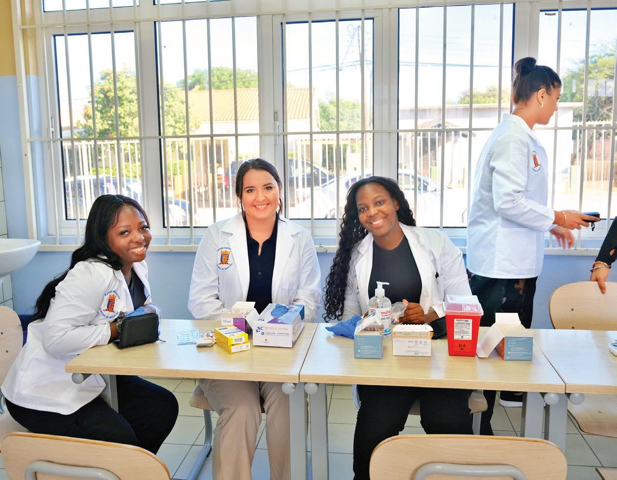 N January 18, 2025, the Lions Club of Aruba hosted a successful Health Fair at Colegio San Augustin. The event, held from 8 a.m. to 12 p.m., saw the participation of approximately 70 attendees, including 24 enthusiastic students from programs such as Nursing, PreMed, PreVet, Veterinary, and MD. The students, guided by esteemed faculty members Dr. Chavan, Dean Bonnie, Dr. Shaafi, and Dr. Sabin, provided various health screenings, including BMI, blood pressure, glucose, and cholesterol checks, culminating in consultations overseen by the faculty.