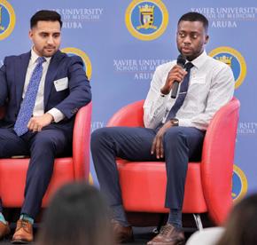 THe Seventh annual alumni Global Meet was held at Xavier University School of Medicine on May 16, 2024. Over 25 alumni from all over the country were present. The opening ceremony gave Dr. Dubey an opportunity to introduce his former students, Dr. rachel Karmally, Class of 2012, and Dr. Sumeet Singh, Class of 2013. Dr. rachel Karmally served as host along with Dr. Sumeet Singh. Dr. Karmally also serves as member of the Xavier Board of Trustees. The alumni were introduced as panel members to full house of students, staff, faculty and other guests. each panel included at least six to seven doctors who spoke about personal experiences, gave great advice, answered questions, and got some great laughs.