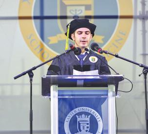 DR. AnGELOS SOUKOVELOS, a native of Greece, was named the salutatorian of Xavier University School of Medicine’s Class of 2024. Angelos has always been a remarkable individual. Completing both his undergraduate and master’s degrees in Psychology in Arizona by the age of 19, his early academic success set the stage for a future marked by extraordinary achievements. Driven by a profound desire to serve and a keen interest in the complexities of the human mind and body, Angelos transitioned to medicine, enrolling in the 5 1⁄2 year Pre-Med to MD program at Xavier University School of Medicine.
