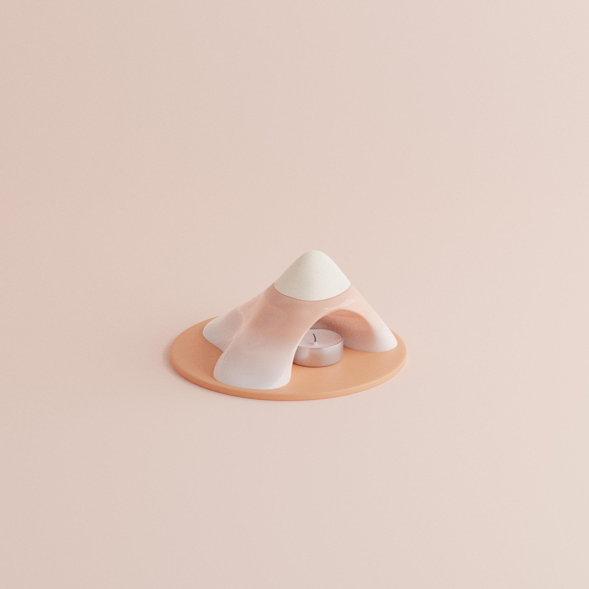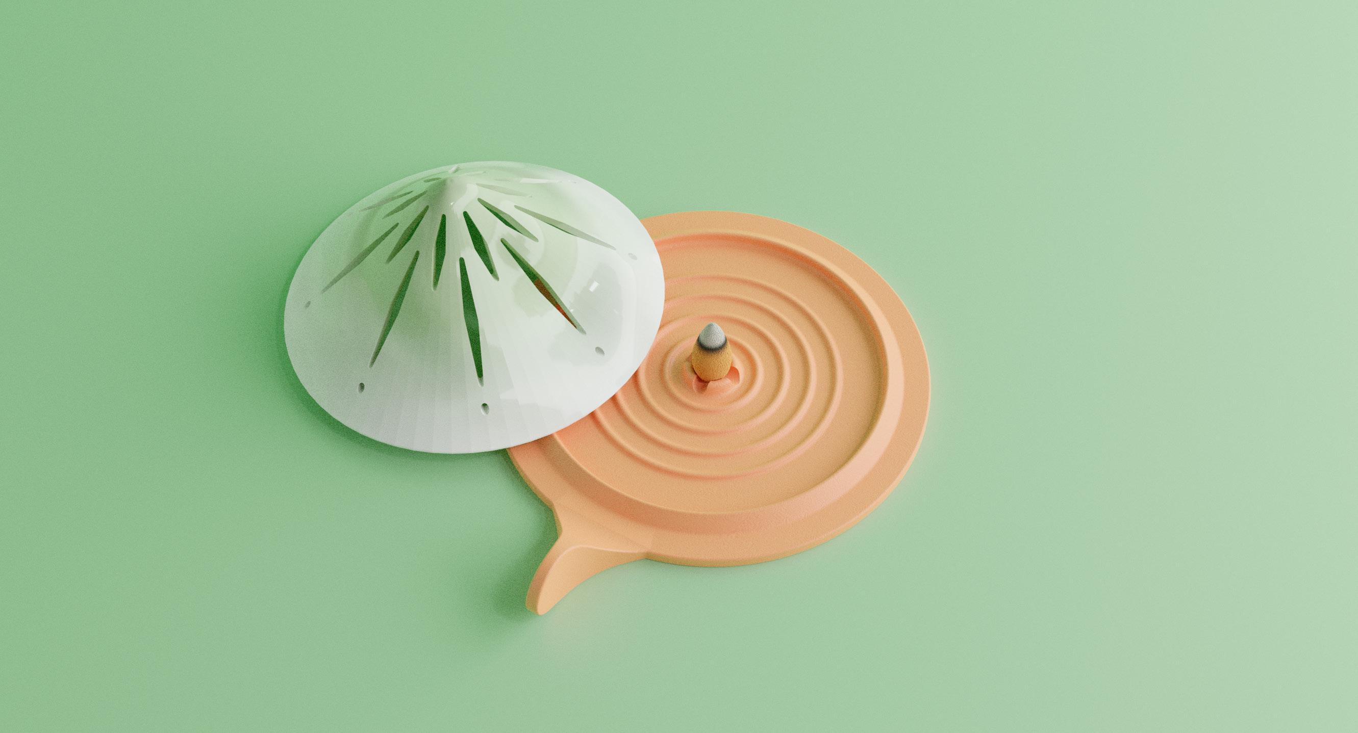 將此形象表現成薰香燃燒的煙霧從山頂 冒出,讓使用者也能感受這份思念。