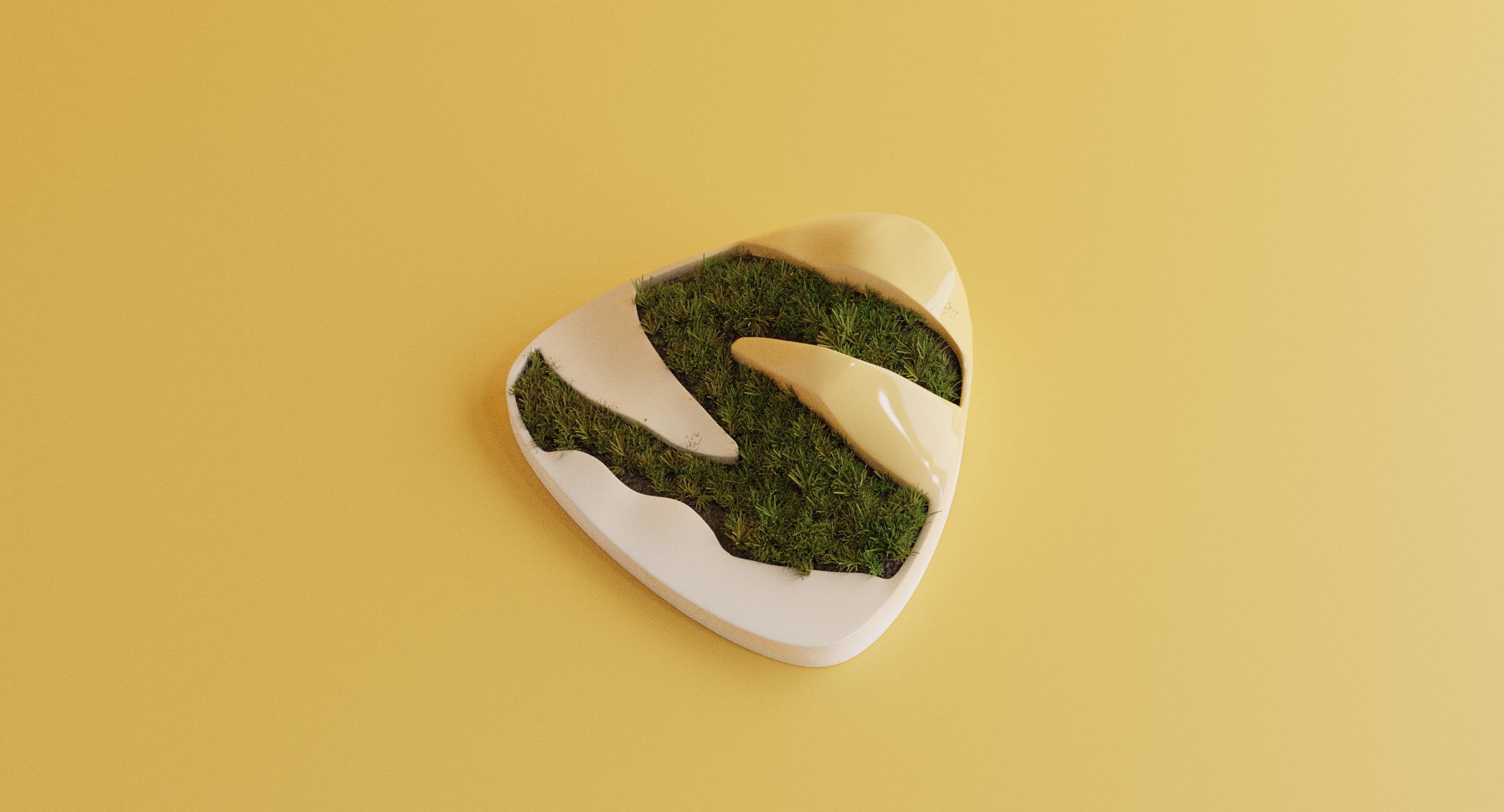 劍潭山據說有老虎精作怪,山林的樹木有 如老虎斑紋。但隨著城市開發的關係,老 虎精便消失,樹木的斑紋也不見了。盆栽 以老虎斑紋的樹木為形象,延伸成自然景 觀被破壞的反思。