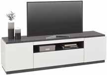 TV-element, dim. 170 X 41,5 X 47 cm, mediapan. Korpus bele barve, pokrivna plošča in podnožje sive barve. (27980119/01)