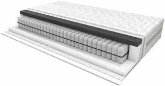 Vzmetnica , dim. 90 X 200 cm, 7-consko žepkasto vzmetno jedro, višine 12,5 cm, je obloženo s 5 cm debelo PU-peno in 12 cm visokimi vertikalami. Snemljiva prevleka je izdelana iz dvoslojne tkanine, ki ustreza zahtevam Oko-tex standarda 100, prešita s PES-vato in retexom, kombinirana s strani. Višina 26 cm. Možnost naročila različnih dimenzij. (06980072/11,10,12-15)