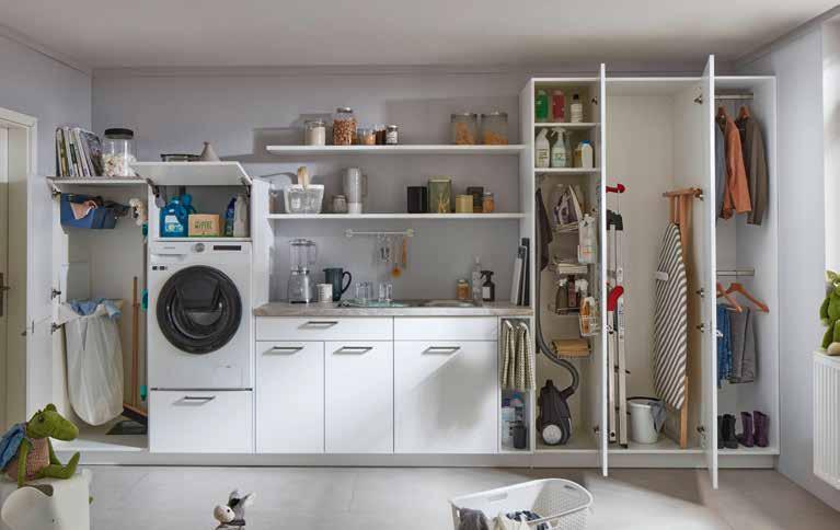 Pralni stroj, likalna deska, gospodinjski pripomočki in drugi predmeti, ki so običajno raztreseni po hiši, imajo zdaj določeno mesto. (04530000/01)