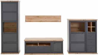 Dnevni regal, dim. 265 X 201 X 50, korpus in fronta: balken hrast. Vstavki barve antracit, steklo sive barve. Vitrina, dim. 60 X 21 X 37 cm: 399,- 279,-, TV-element, dim. 205 X 53 X 50 cm: 469,- 328,-, panel, dim. 60 X 104 X 25 cm: 89,90 71,90. V ponudbi