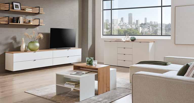 Dnevni regal, barva: artisan hrast/črna, vključno z LED-osvetlitvijo. TV-omarica, dim. 173 X 63 X 47 cm: 319,- 222,-, komoda, dim. 174 X 88 X 38 cm: 449,- 309,-, vitrina, dim. 76 X 195 X 41 cm: 379,- 269,-, polica, dim. 155 X 26 X 25 cm: 99,90 79,90, visoka komoda: 359,- 249,-. V ponudbi tudi klubska miza, dim. 110 X 65 X 50 cm: 139,- 94,90, in komoda, dim. 130 X 90 X 41 cm: 399,- 279,- (05890005/20,15,18-19,21-23)