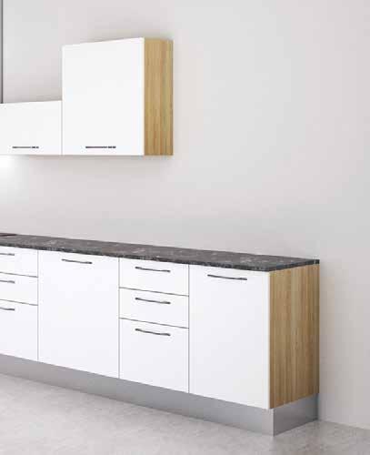 Kuhinja po elementih se ponaša s kombinacijo bele barve in barve hrasta, ki ustvarja lep videz ter omogoča kombiniranje s številnimi elementi. Gre za nadvse funkcionalne kuhinjske elemente, ki omogočajo idealno in preprosto sestavljanje po vaših željah. Delovna plošča, podnožje, višine 15 cm, in ščitna LETEV za doplačilo. Elementi so na zalogi v centralnem skladišču oziroma dobavljivi do odprodaje zalog. (18750005/01)