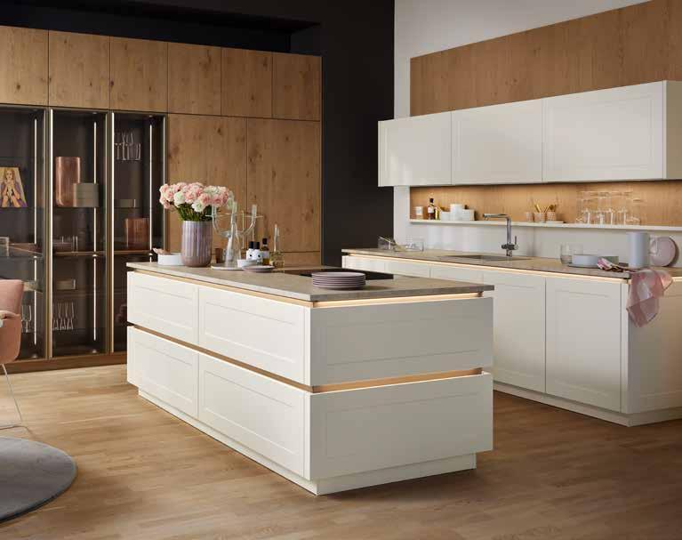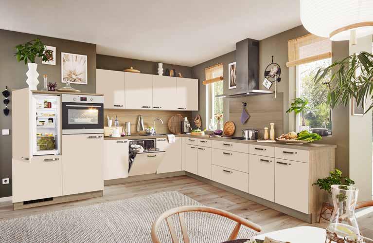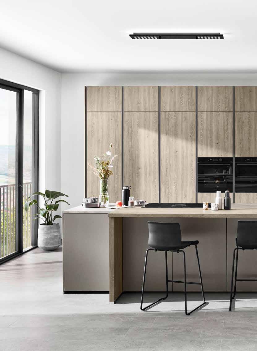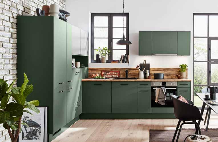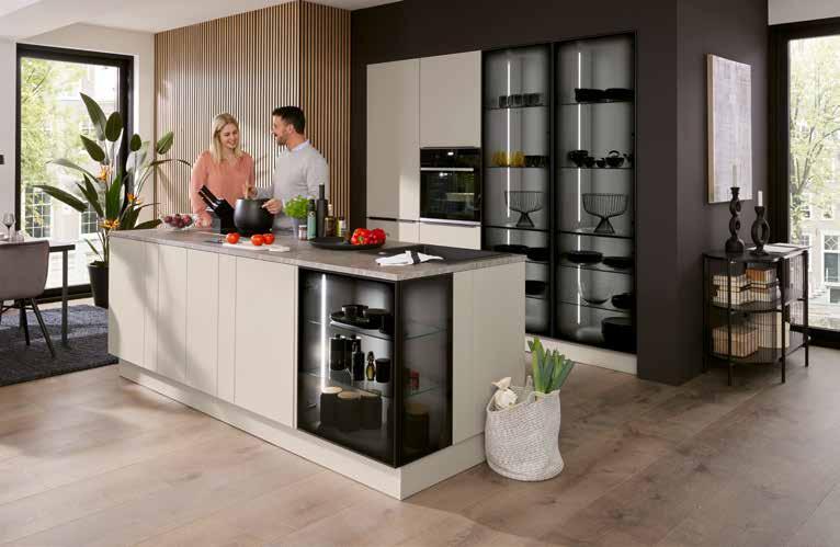 Mat, supermat ali ultra mat? Značilnosti površin igrajo osrednjo vlogo pri oblikovanju kuhinje, zato ponujamo tudi mat izvedbe v različnih barvnih odtenkih. Ne samo da je videti estetsko, ima tudi lastnosti, ki resnično ustrezajo vsakdanjemu življenju. Ultra mat prednji del s priljubljeno prevleko proti prstnim odtisom je zdaj na voljo tudi v odtenkih pesek in alpska bela.