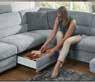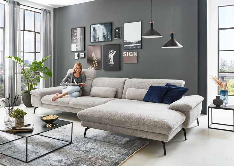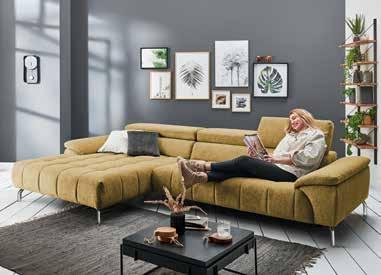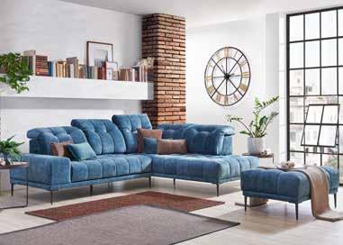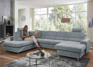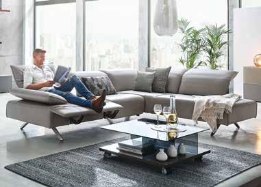 Sedežna garnitura , sestav, dim. 207 X 301 cm, v tkanini kategorije TTA, vključno z obdelanih hrbtiščem in štirimi nastavljivimi nasloni za glavo. Doplačilo za motorni izvlek sedišča: 406,- 309,-, tabure, dim. 156 X 72 cm: 413,- 290,-, okrasne in ledvene blazine. (25270062/01-02,24)