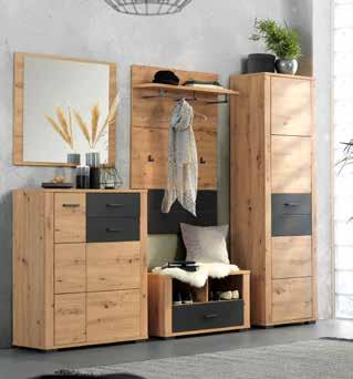 Predsoba , dim. 230 X 195 X 38 cm. Barva artisan hrast, vstavki v antracitni barvi. Dobavljivo po elementih. (00030022/01-05)