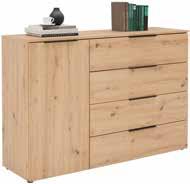 Komode, dim. 91 X 93 X 42 cm ali 136 X 93 X 42 cm ali 181 X 93 X 42 cm. TV-element, dim. 160 X 51 X 50 cm. Barva artisan hrast, melamin, ABS-robovi, kovinski ročaji. (14160003/01-04)