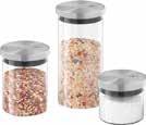 6: Posoda za shranjevanje „CUNDO“, nerjaveče jeklo, steklo, različne velikosti. 10,5 X 8,8 cm, 0,3 l; 10,5 X 13,3 cm, 0,6 l, 22,99 16,99; 10,5 X 20,6 cm, 1,1 l, 24,99 18,99. (32100053/01-03)