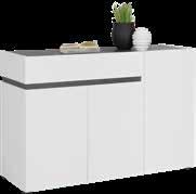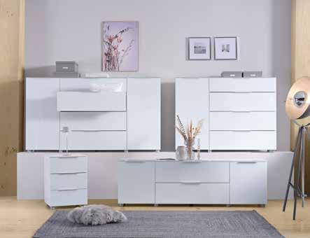 Program komod, korpus bele barve, visoki sijaj, fronte in pokrivna plošča bele barve, kovinski ročaji, mehko zapiranje. Na voljo 9 elementov: predalnik, 3 X predal, dim. 45 X 60 cm: 169,- 125,-; predalnik, 4 X predal, dim. 45 X 100 cm: 229,- 169,-, predalnik, 4 X predal, dim. 90 X 100 cm: 329,245,-, komoda, dim. 135 X 99 cm: 449,- 335,-, komoda, dim. 181 X 99 cm: 559,- 419,-, komoda, dim. 225 X 99 cm: 649,- 485,-, TV-element, dim. 180 X 54 cm: 369,- 275,-, TV-element, dim. 225 X 54 cm: 439,- 335,- (05540001/01-03,05-09)