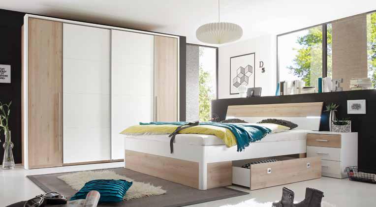 Spalnica , barva: dekor plemenita bukev/bela. Omara v kombinaciji drsnih in klasičnih vrat je dobavljiva v dveh širinah: 270 in 315 cm, postelja, dim. 180 X 200 cm, vključuje posteljna predala. Venec omare, nočni omarici, vzmetnica in pod za doplačilo. Omara, dim. 270 X 225 X 61 cm: 829,- 599,-. Venec, dim. 270 X 225 cm: 149,- 109,Venec, dim. 315 X 225 cm: 159,- 115,-. Postelja, dim. 180 X 200 cm: 379,- 275,-. Par nočnih omaric, dim. 46 X 56 X 41 cm: 149,- 109,-. Komoda, dim. 135 X 90 X 40 cm: 279,199,-. Par polic, dim. 105 X 2,2 X 48 cm: 44,90 29,90. Omara, dim. 315 X 225 X 61 cm: 899,- 649,- (25220144/18,03-07,12;0149/02) 599,OMARA, dim. 270 X 225 X 61 cm 27 % POPUST 829,-