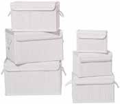 1: Košara za regal, bambus, poliestrska vlakna, s pokrovom. 10 X 20 X 14 cm; 14 X 25 X 16 cm 4,99 3,99; 18 X 29 X 18 cm 6,99 4,99; 22 X 33 X 20 cm 8,99 6,99; 26 X 36 X 22 cm 10,99 7,99; 31 X 41 X 24 cm 12,99 9,99. (88390014/01-06;0016/01-06)