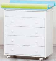 3: Previjalna miza „LISABON“, 76 X 97 X 47 cm, les, s 4 predali ter s koleščki, snemljiva podloga za previjanje, čvrsta konstrukcija, na voljo v beli barvi. (30300124/01)