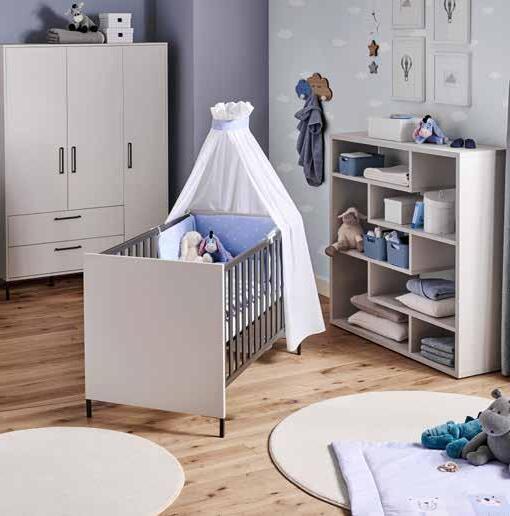 2: Otroška soba „MILAN“, les - bukev, sivo-bele barve. Otroška posteljica , 70 X 140 cm, nastavljiva po višini, vključno s posteljnim dnom. Previjalna komoda , 119 X 91/101 X 45/77 cm, s tremi predali, vključno s previjalnim nastavkom; 399,99 299,99 Omara za oblačila , 139 X 195 X 51 cm. (28080237/01,03,05)