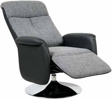 TV-fotelj, z relaks funkcijo, dim. 71 X 111–86 X 81–156 cm, v kombinaciji sivega blaga in črnega tekstila v videzu usnja. Nosilnost: 130 kg. (26740024/01)