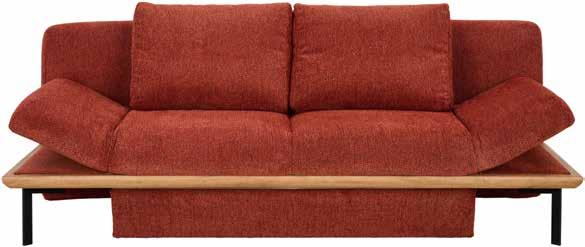 Zofa s posteljno funkcijo, dim. 212 X 89 X 102 cm, z valovitim vzmetenjenjem in nastavljivimi rokonasloni, posteljno funkcijo in prostorom za shranjevanje. V blagu kategorije 2, opečno rdeče barve, noge kovinske, črne. Dim. ležišča: 150 X 208 cm. (24690303/01)