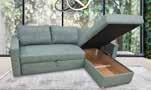 Sedežna garnitura, dim. 155 X 230 cm, prevleka v zeleni barvi Lennon 203, vključno z ležiščem in zabojem za shranjevanje Leva ali desna postavitev. (15240021/13-14)