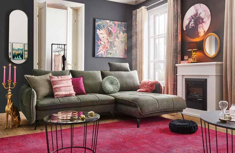 Sedežna garnitura , dim. 212 X 383 X 195 cm, v tkanini, kategorije 3, vkjučno s obdelanim hrbtiščem. Doplačilo za: motorno izvlečno fukncijo: 614,- 469,-, nastavljivo globino sedišča: 114,- 89,-, ledveno blazino: 39,- 29,-, in okrasne blazine. (02450347/04)
