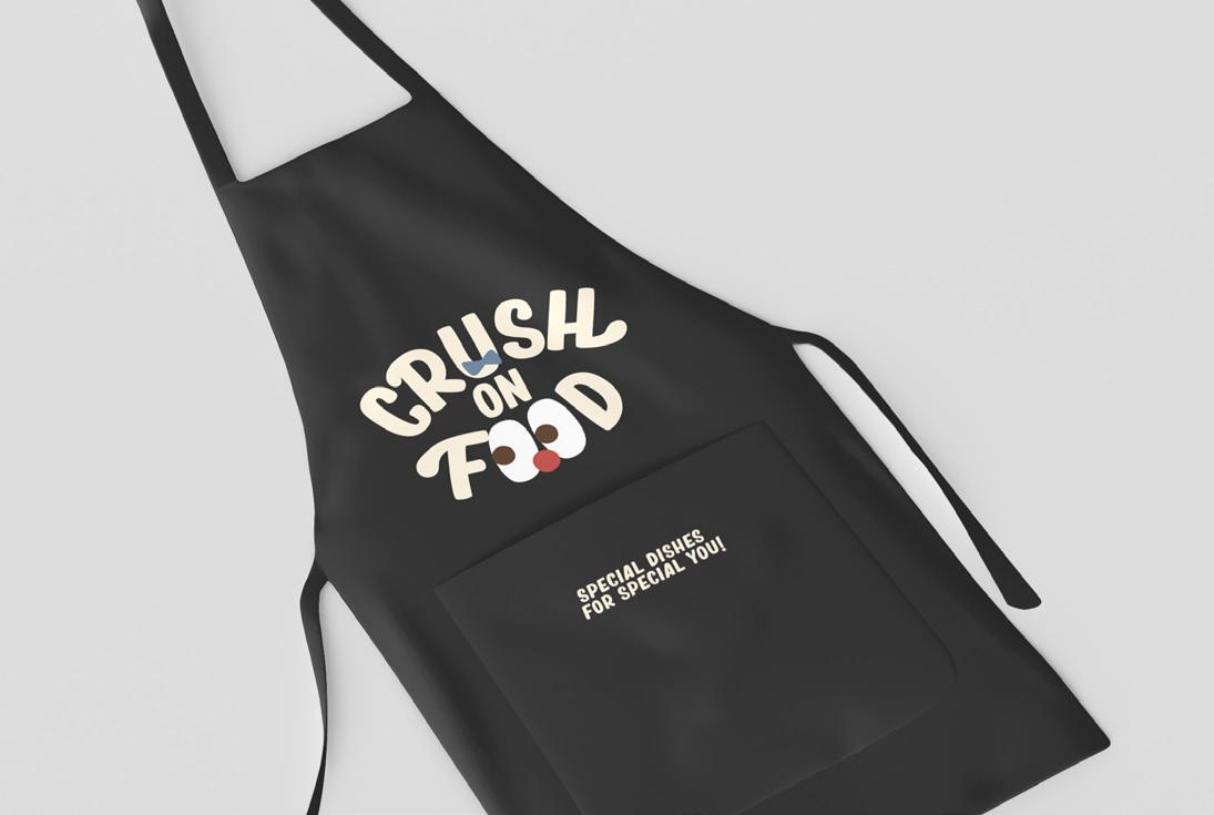 《CRUSH ON FOOD》是結合所有讓我感到幸福的元 素所設計而成的,其中包含一隻充滿好奇心的小黑 貓,熱衷探索一切新奇與未知,牠會與食物們擦出